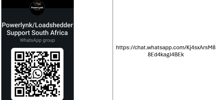 You can request a logger protocol change if required, and a firmware update either through our Helpdesk and call center (0101003589 / +27101003589) or on the “Powerlynk South Africa” WhatsApp group. Scan the QR or follow the link below to join the group within WhatsApp.