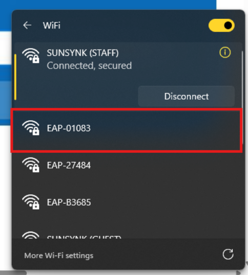 Use a smart phone or PC to Connect to the hotspot of the inverter datalogger. This will be the SSID beginning with EAP-. The password for the logger will be either ‘12345678’ or the logger key which is printed on the logger label.