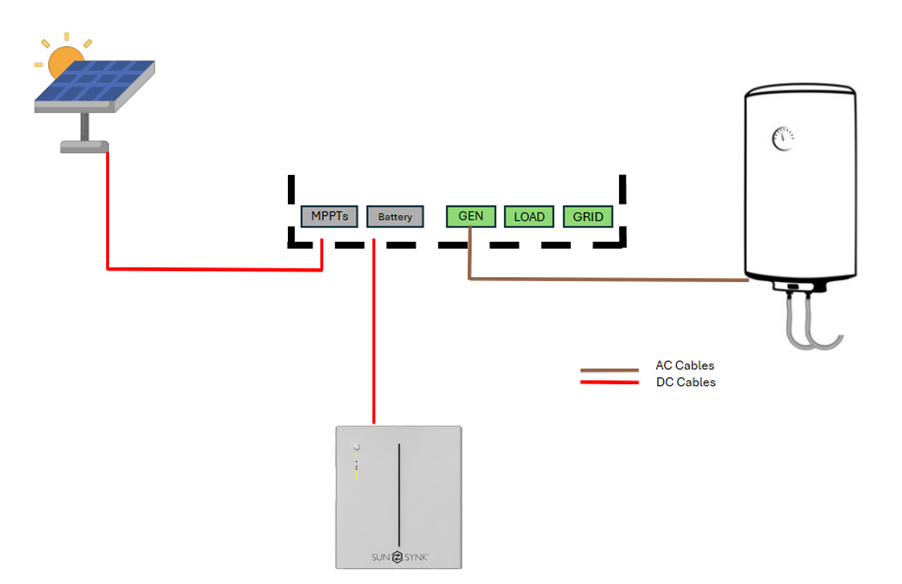 This setting is designed for when you have a good amount of PV production and your batteries are at a certain SOC, you can activate the smart load to power up an immersion heater for example.